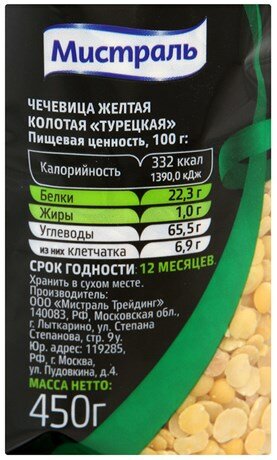 Чечевица Мистраль желтая колотая Турецкая, 450 г интересное: