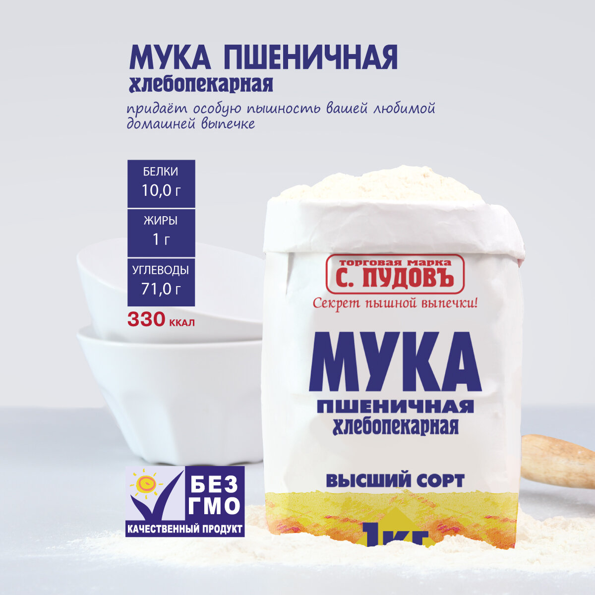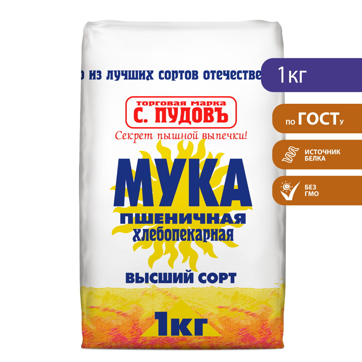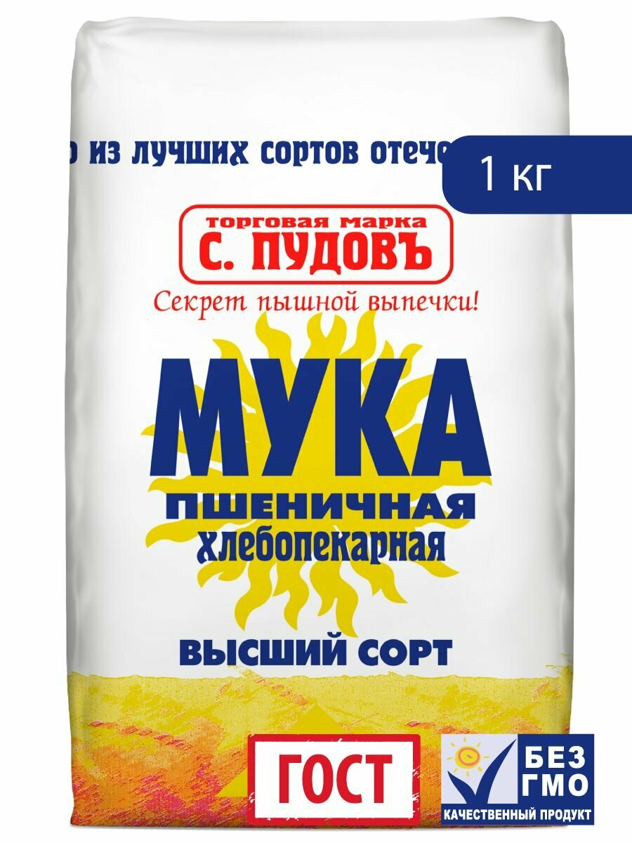Мука пшеничная хлебопекарная высший сорт С. Пудовъ, 1 кг