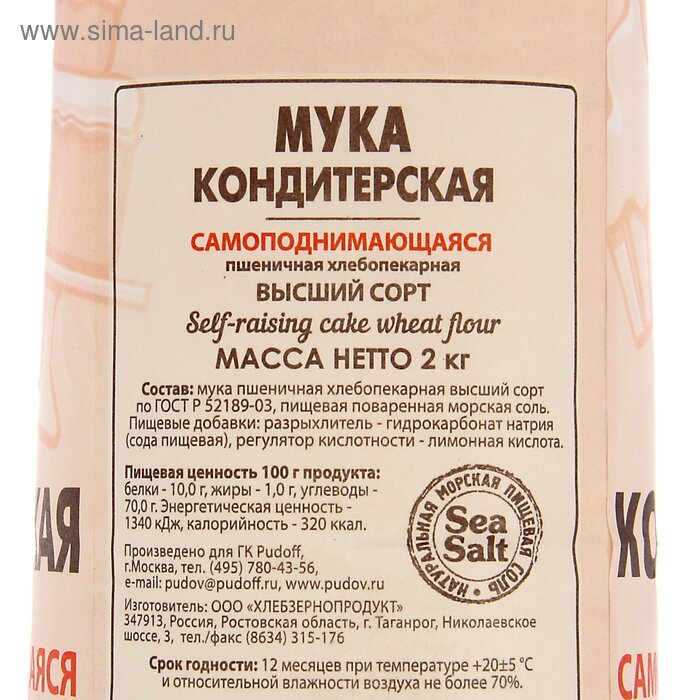 СохранитьМука кондитерская самоподнимающаяся пшеничная хлебопекарная в/с С. Пудовъ, 2 кг интересное:
