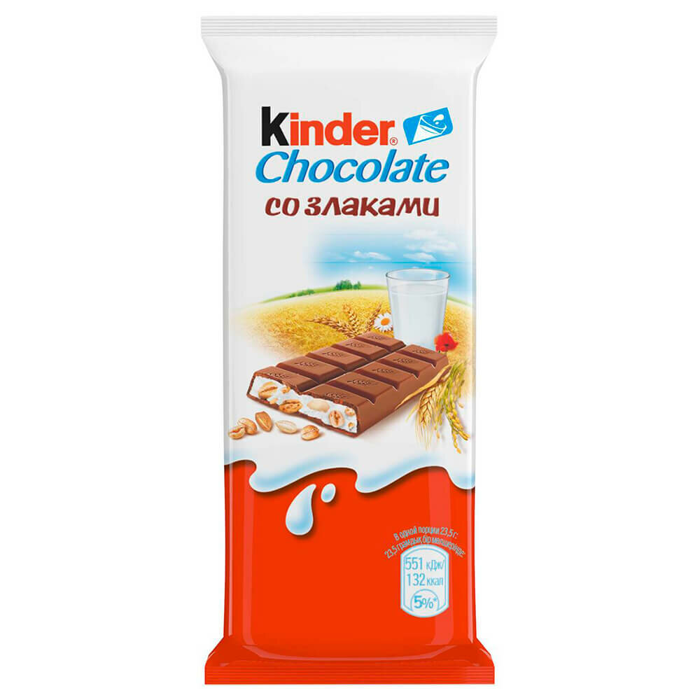 Шоколад молочный Kinder® Chocolate со злаками с молочно-злаковой начинкой, 94г