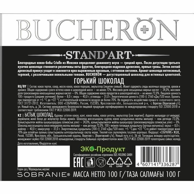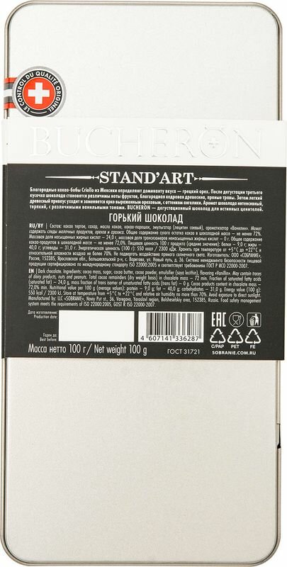 Шоколад Bucheron Stand'art горький 72% какао, 100 г