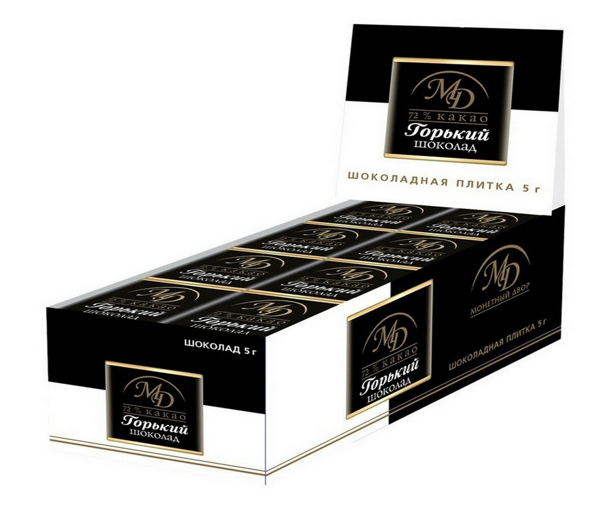 Шоколад горький шоколад 72% какао, 96 плиток по 5 г, монетный двор в шоубоксах