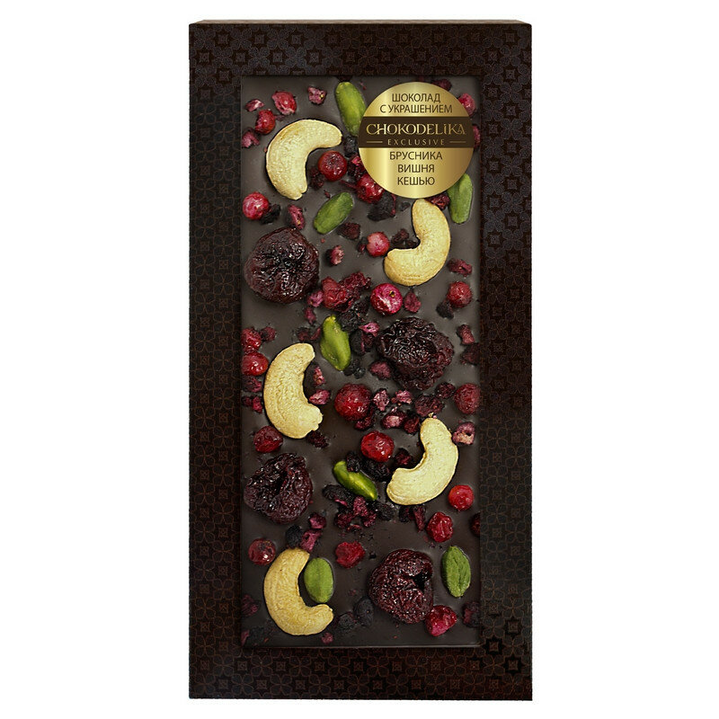 Шоколад темный с украшением брусника, вишня, кешью интересное: