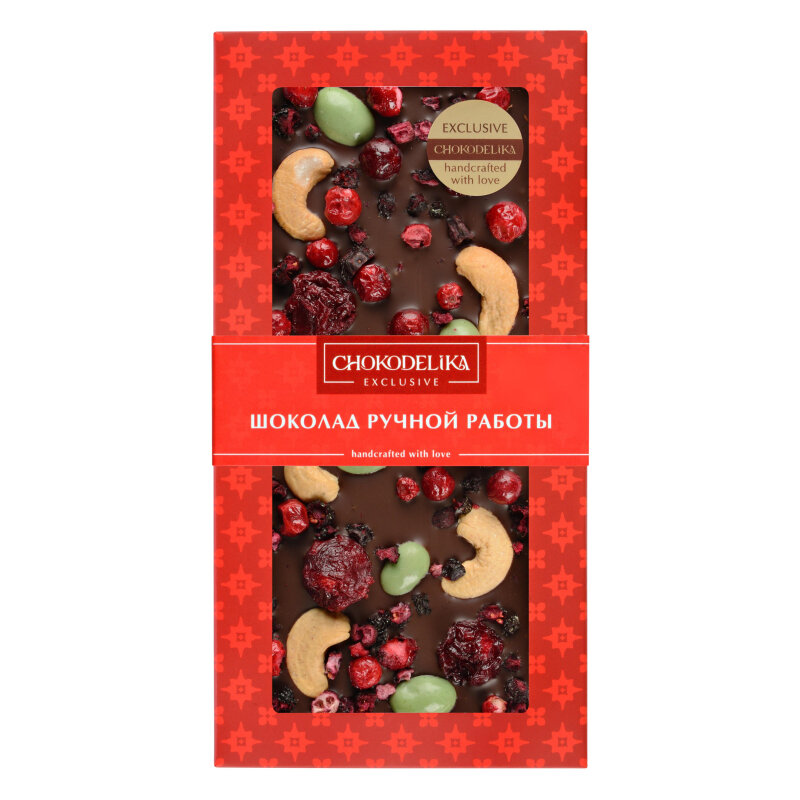 Подарочный шоколад Chokodelika темный с украшением из ягод и кешью 100 г 889066