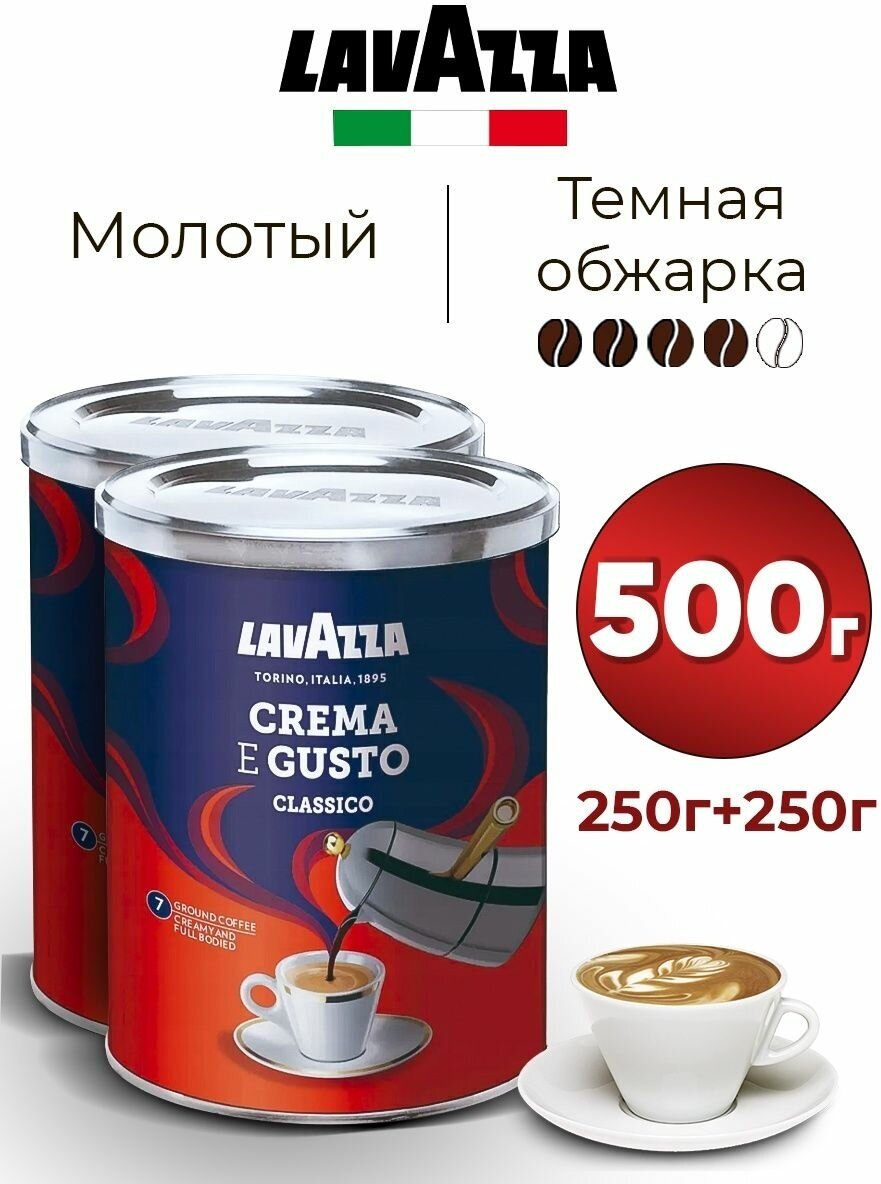 Кофе молотый Lavazza Crema e Gusto Classico ж/б, 250гр х 2шт