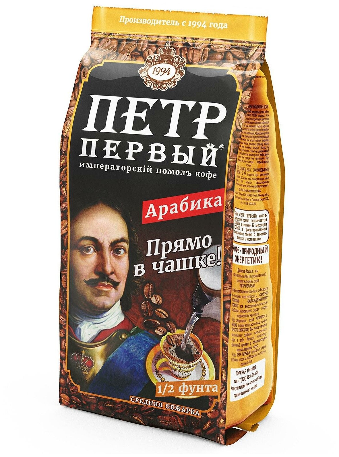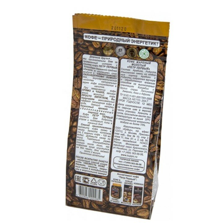 СохранитьУпаковка 16 штук Кофе молотый Петр Первый императорский помол 204г интересное: