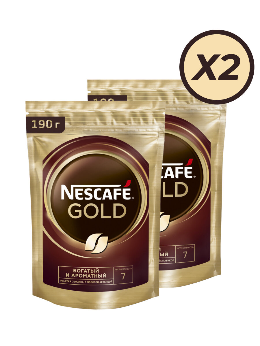 Купить Nescafe Gold Кофе растворимый сублимированный с добавлением натурального жареного молотого кофе, 190 г, 2 шт