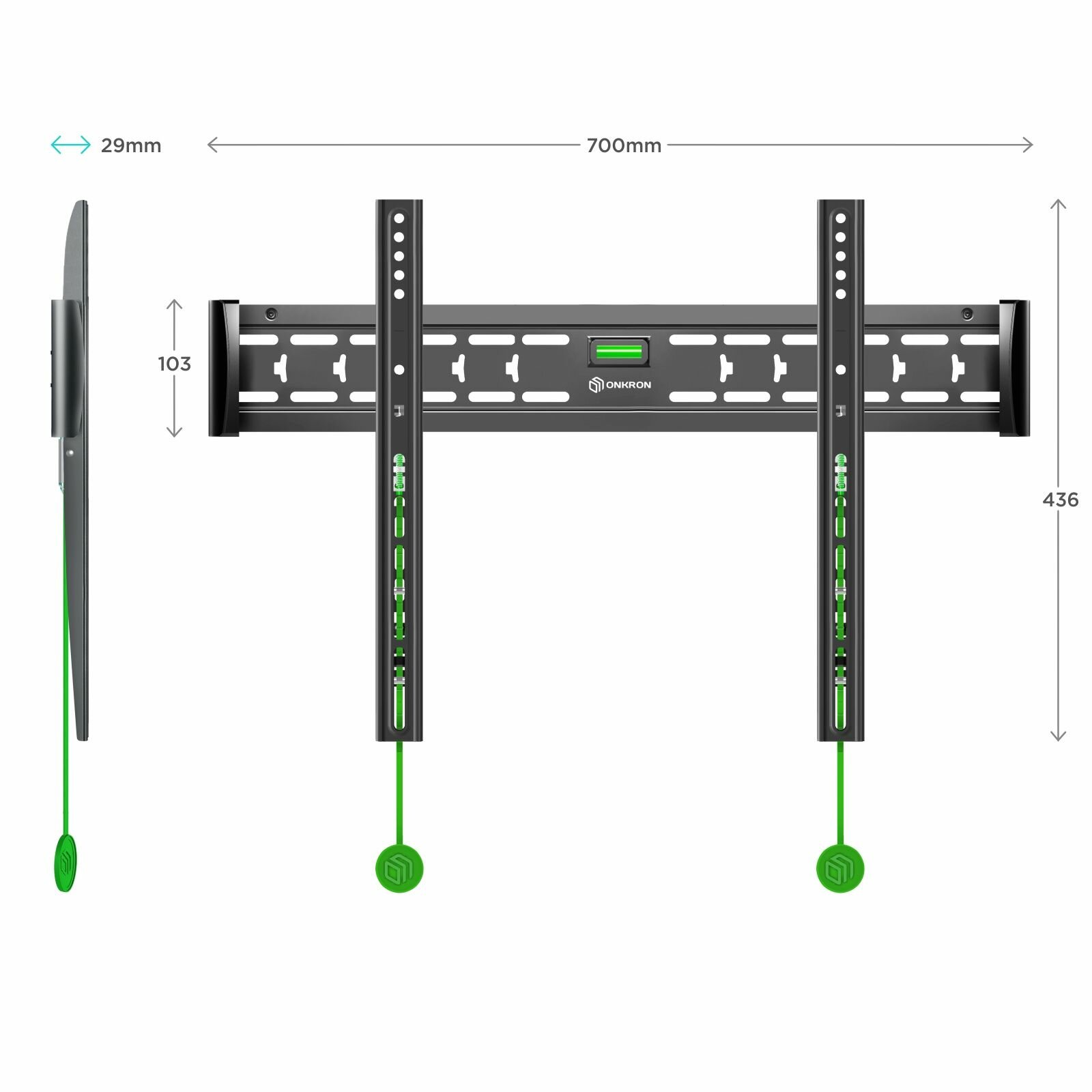 Кронштейн ONKRON/ 40-65"" макс 400*600 наклон 0? от стены: 29мм макс вес 68,2кг, встр уровень