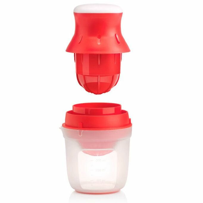 Делала апельсиновый сок, гранатовый сок и сок из арбуза, все очень удобно, но конечно нужно прикладывать усилия. Удобно брать с собой в отпуск. Можно мыть в посудомойке. |