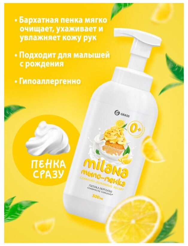 Мыло-пенка Milana "Лимонный десерт" , 500 мл GRASS 4289700 .