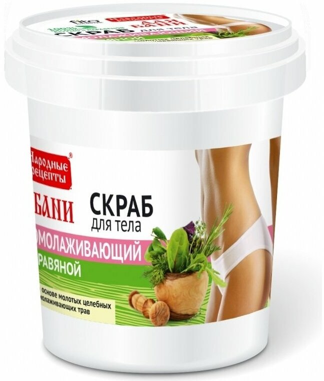 Скраб для тела травяной "Народные рецепты" омолаживающий, для бани, 155 мл./В упаковке шт: 1
