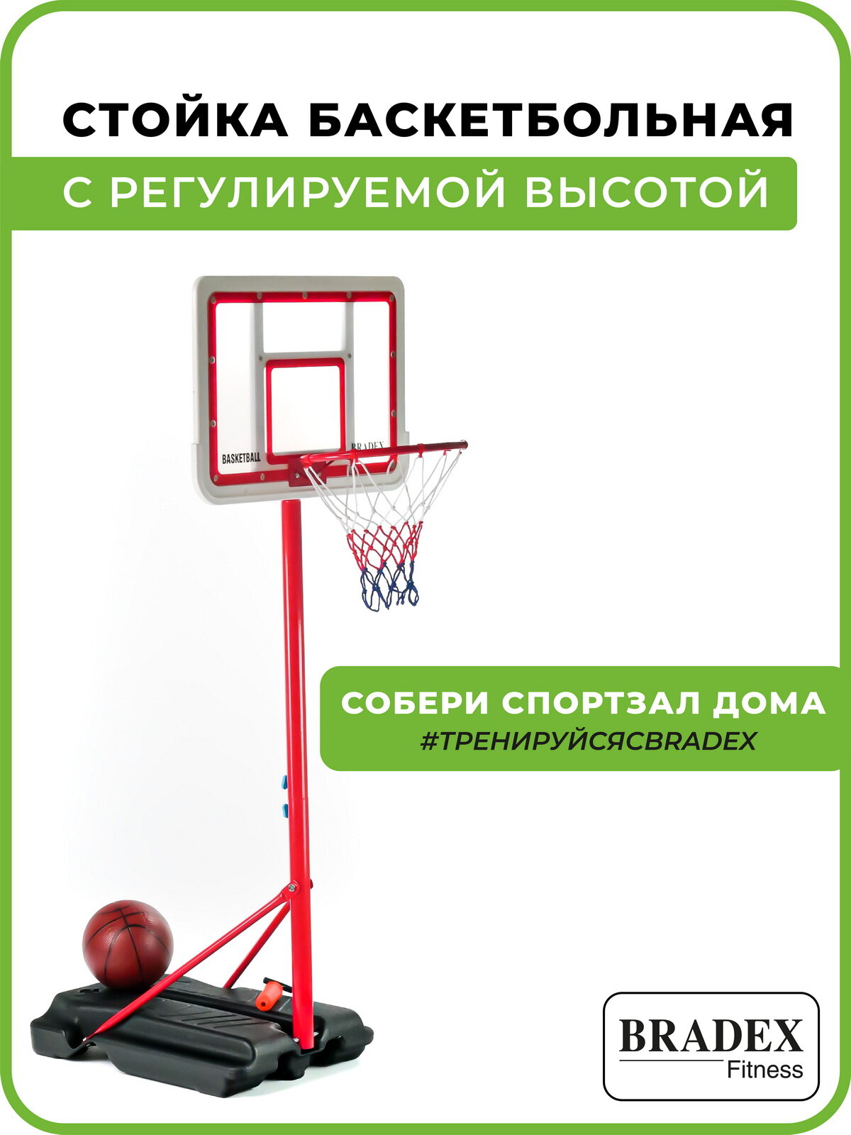 BRADEX Стойка баскетбольная с регулируемой высотой, BRADEX