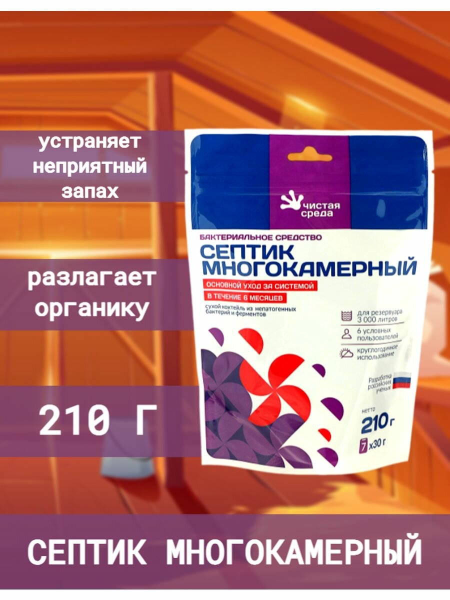 Чистая среда Биоактиваторы для септиков "Септик многокамерный", дой-пакет, 210 гр