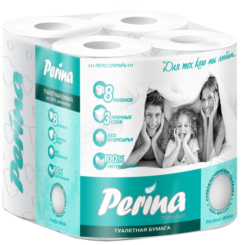 Туалетная бумага Perina Perfect White белая трехслойная 4 рул.
