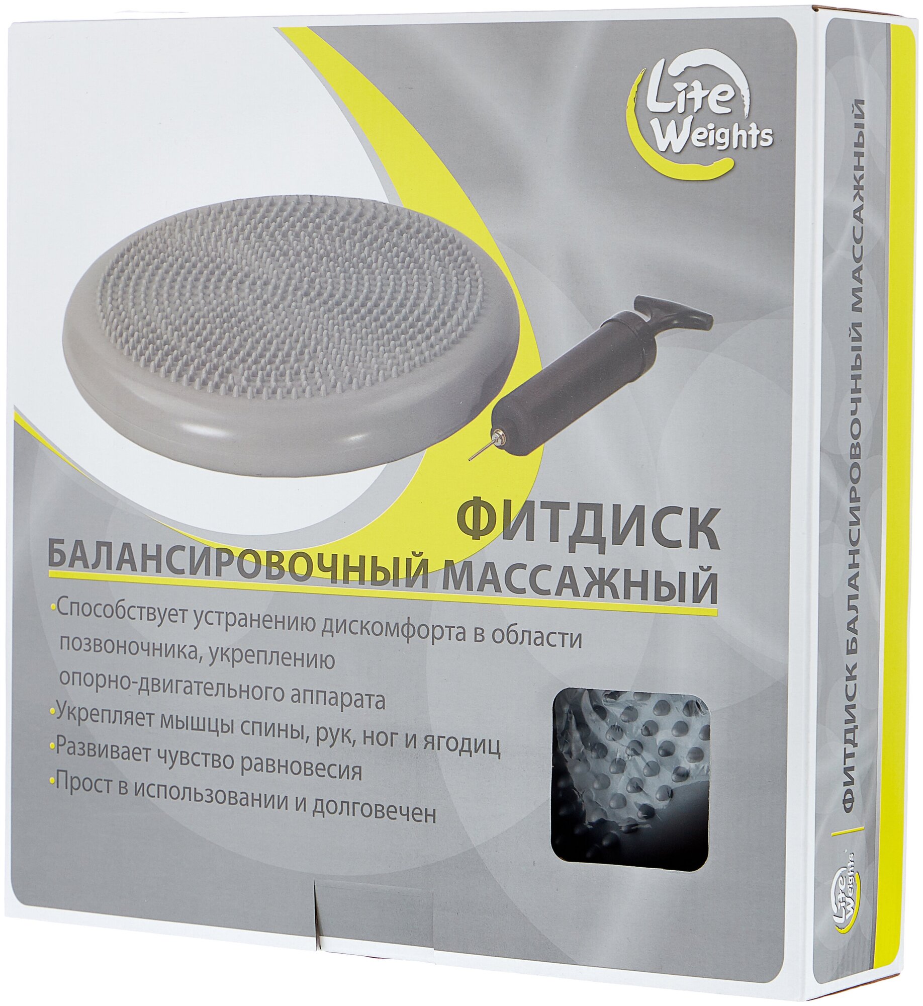 Фитдиск Lite Weights балансировочный, массажный, (33*5,4 см, с насосом, серебро)
