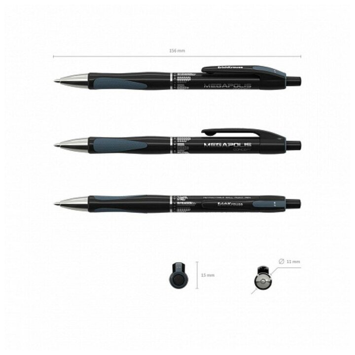 Ручка шариковая автоматическая ErichKrause MEGAPOLIS Concept, узел 0,7 мм, чернила черные, длина линии письма 1000 м, блистер