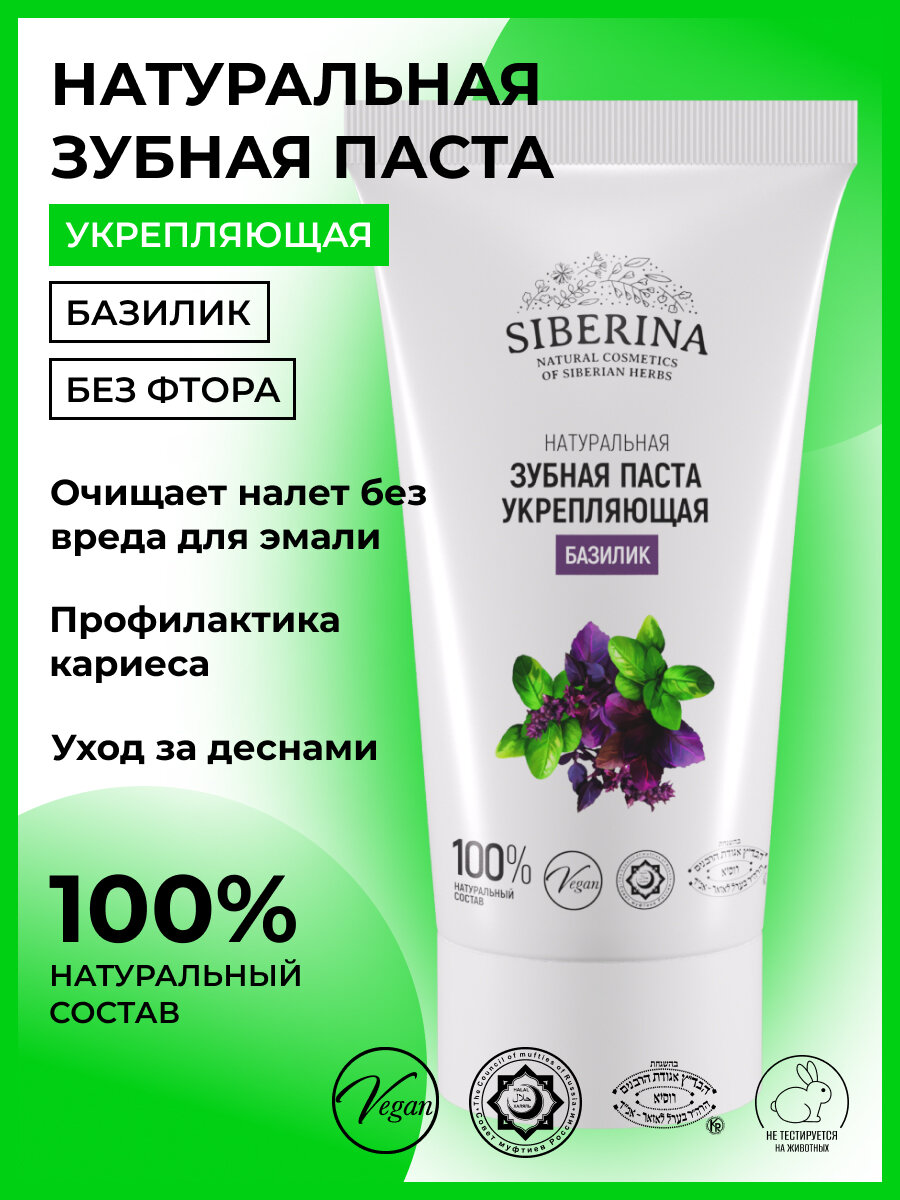 Купить Siberina Натуральная зубная паста укрепляющая "Базилик" 50 мл