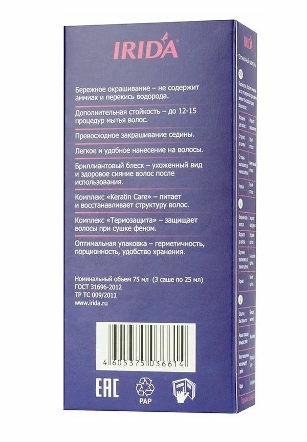 IRIDA, Шампунь оттеночный, Горький шоколад, 75 мл