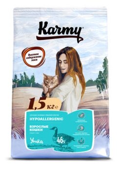 Сухой корм для кошек Karmy гипоаллергенный, с уткой 1.5 кг