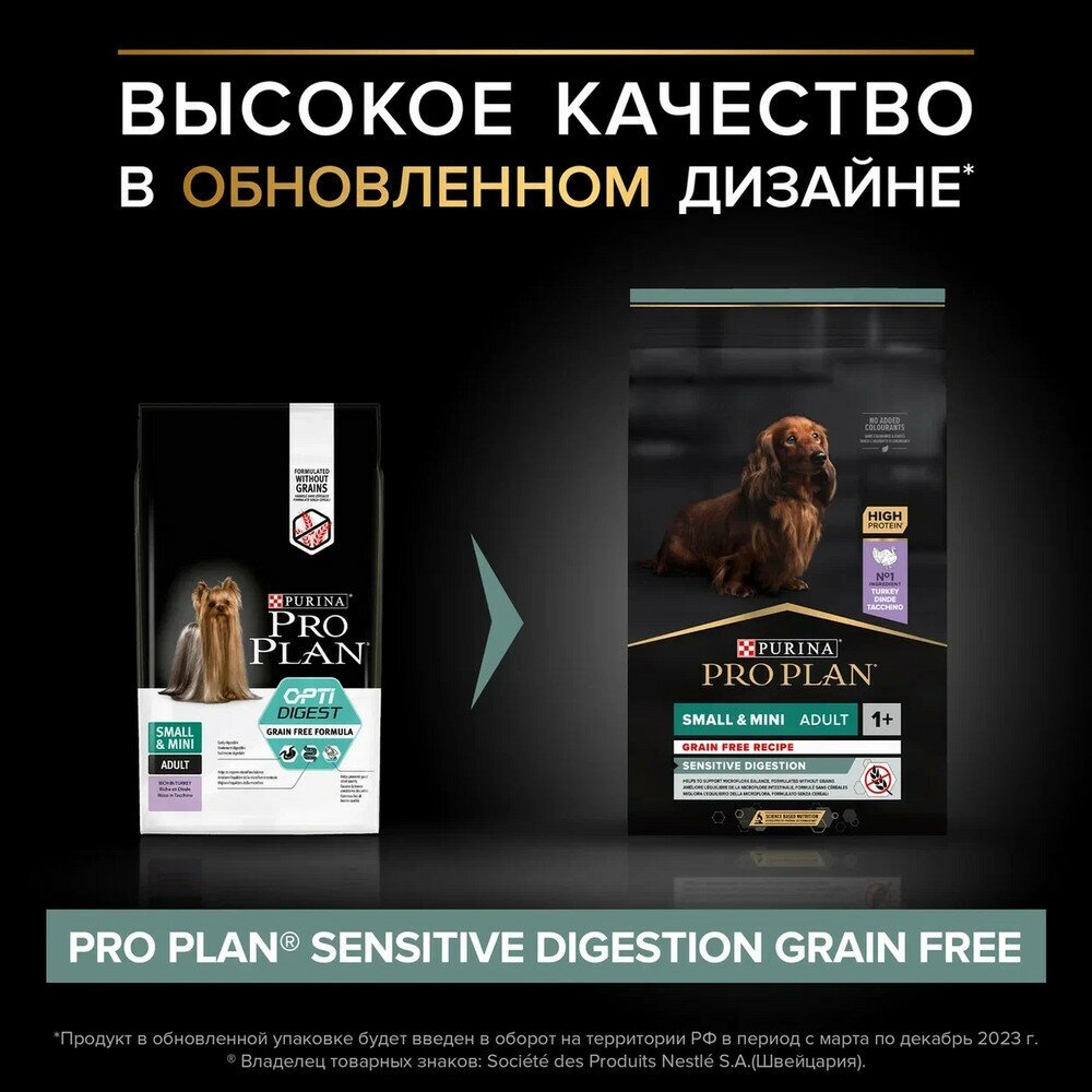 Pro Plan Grain Free Mini корм для взрослых собак мелких пород с чувствительным пищеварением Индейка, 2,5 кг.