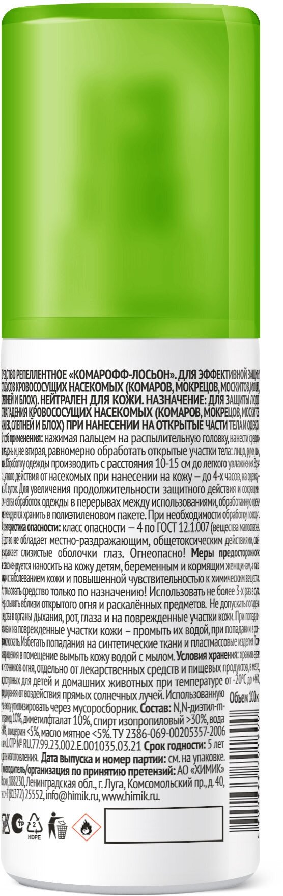 ДЭТА Лосьон-спрей репеллентный от комаров "Комарофф", 100 мл