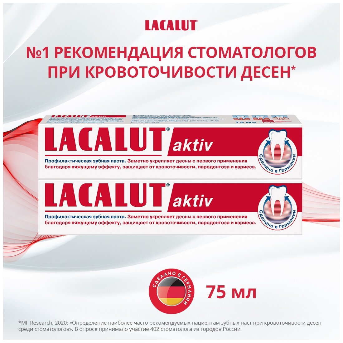 Зубная паста LACALUT Aktiv, 75 мл, 2 шт.