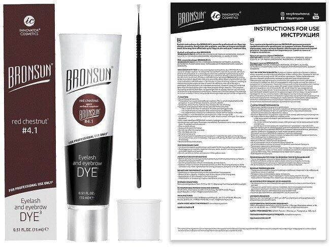 Краска Bronsun для ресниц и бровей, обновленная версия, тон 4.1 медный каштан, 15 мл