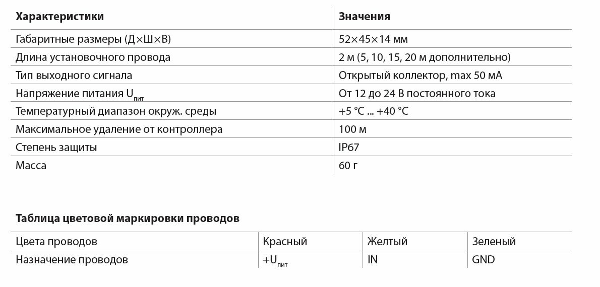 | Плюсы: | Надёжный, недорогой, не требует питания, есть варианты с разной длиной провода |
