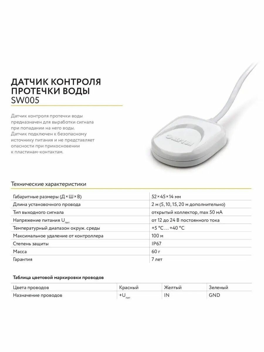 Датчик контроля протечки воды SW005-20,0 интересное: