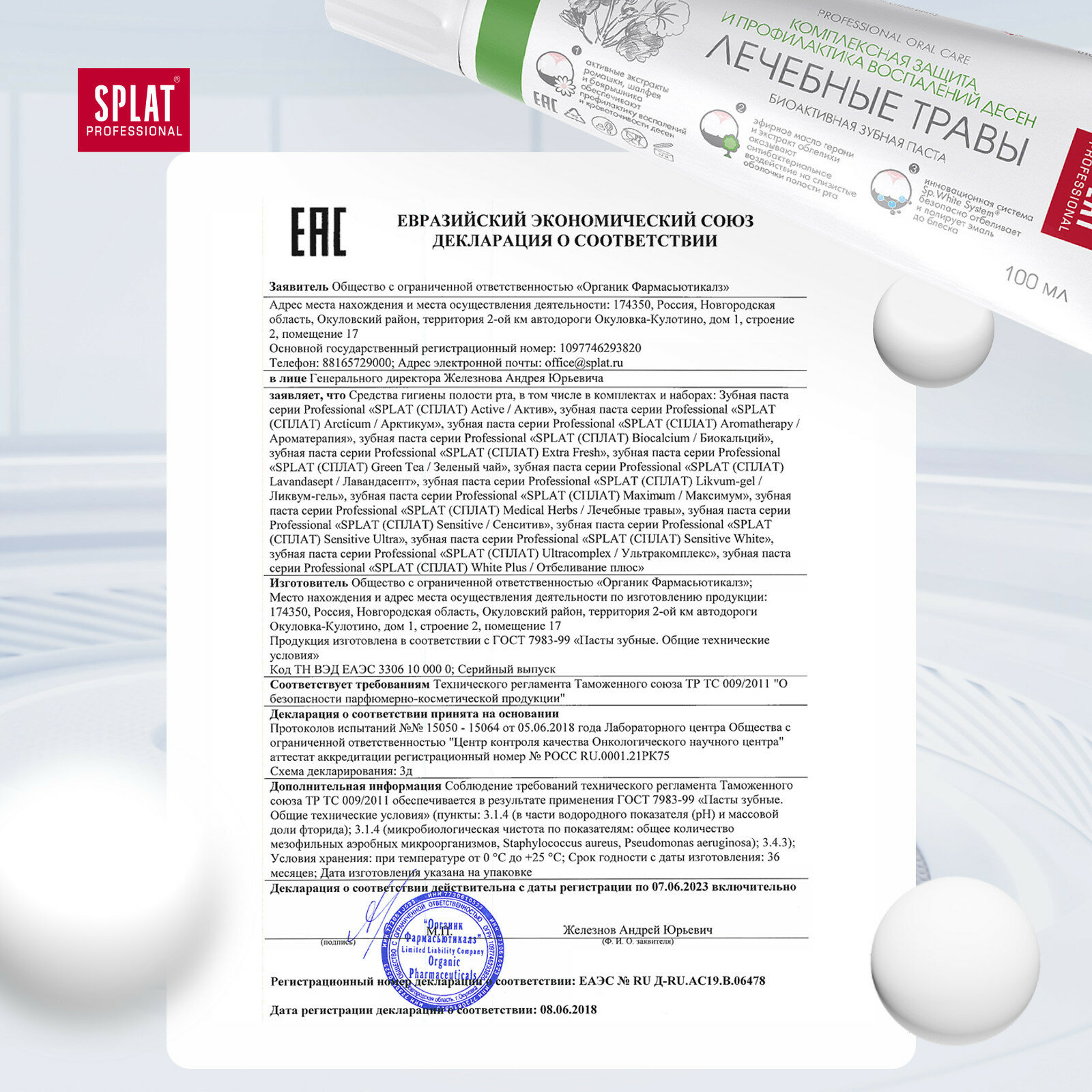 SPLAT Professional Лечебные травы Биоактивная зубная паста для комплексной защиты и профилактики воспалений десен 100 мл