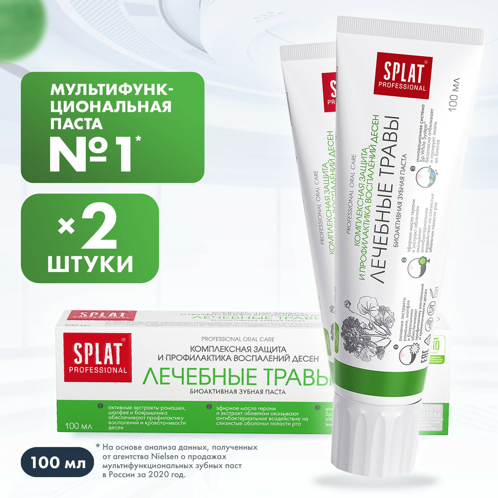 Купить Зубная паста Splat Professional Лечебные травы, комплексная защита и профилактика воспаления десен, 100 мл х 2 шт