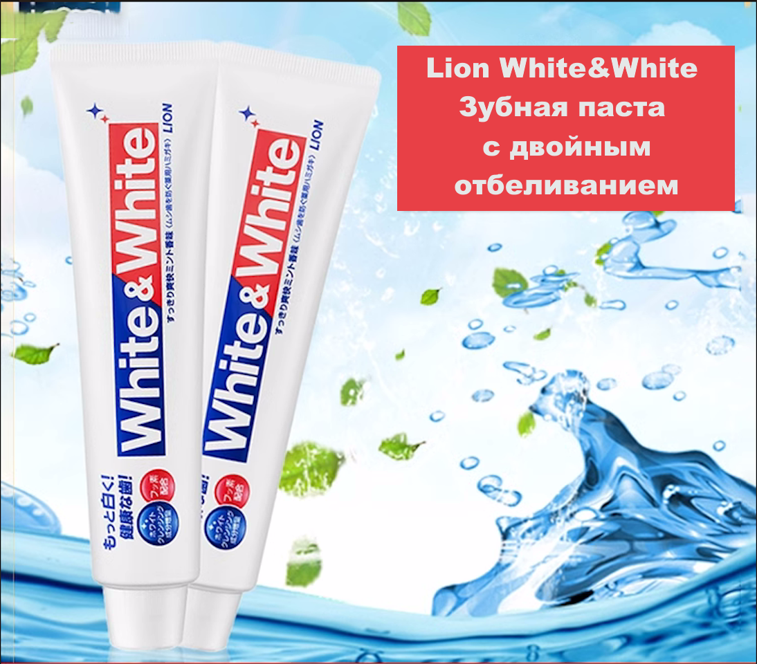 2шт Lion White&White Зубная паста c двойным отбеливанием, туба 150г, Япония
