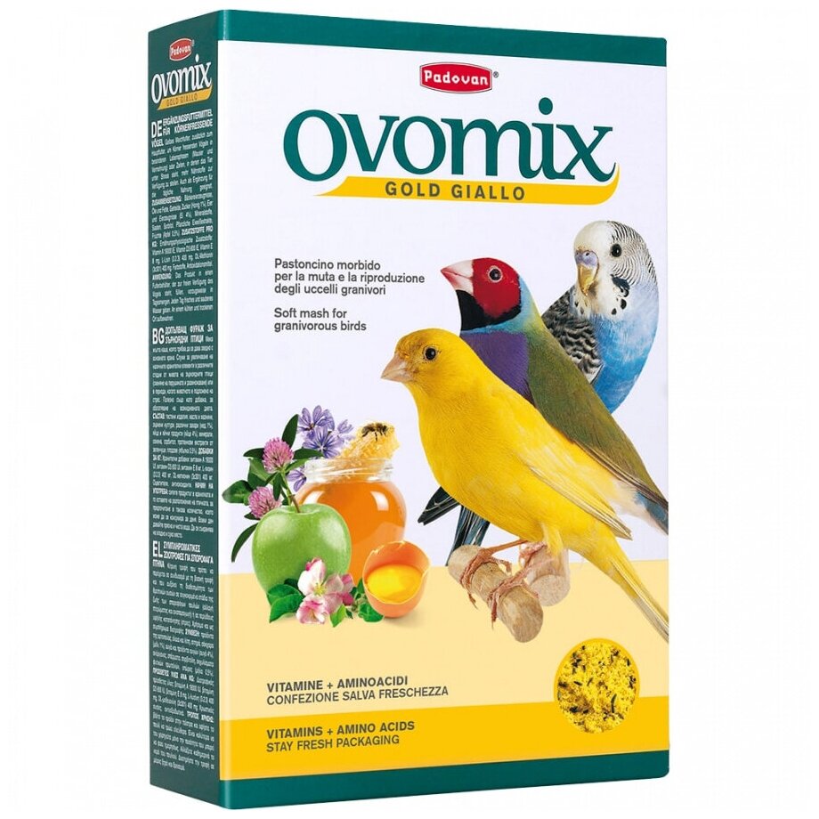 Корм Padovan OVOMIX GOLD giallo дополнительный для декоративных птиц c желтым оперением (канареек, волнистых попугаев, экзотических птиц) гранулированный (1кг)
