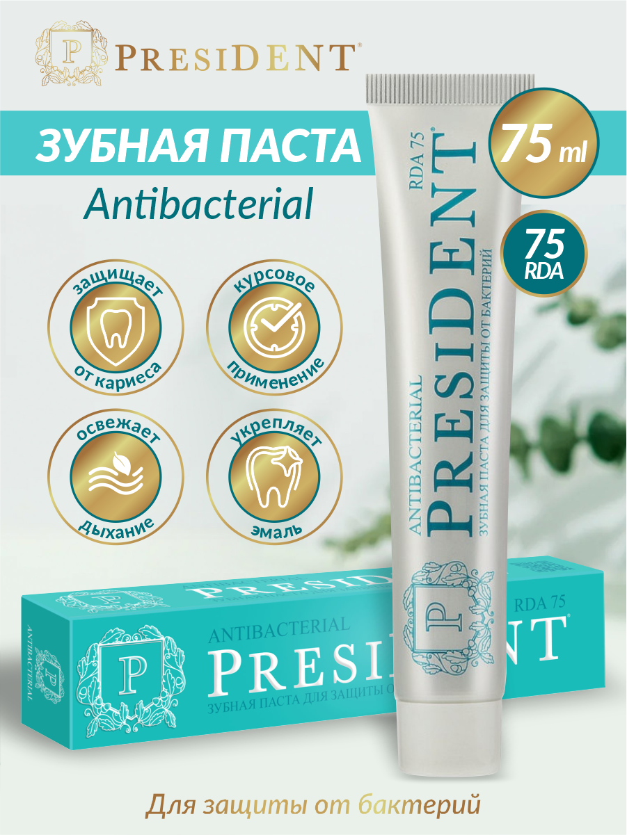 Зубная паста President Antibacterial, 75 RDA, 75 мл 7069289