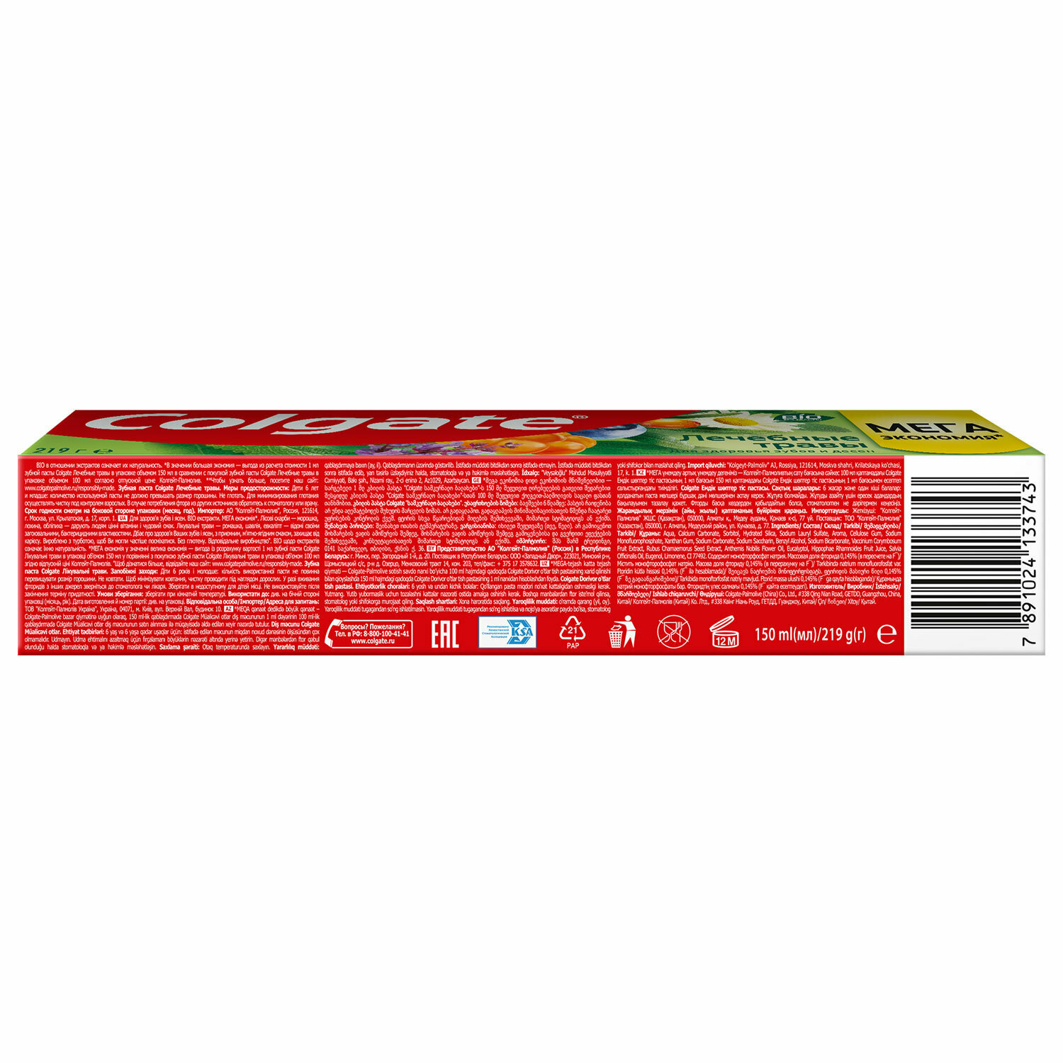 Зубная паста 150 мл COLGATE "Лечебные травы", отбеливающа, сфторидом и кальцием, 7891024133743