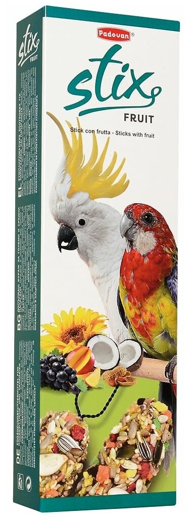 Купить Padovan Stix parrots лакомство для крупных попугаев фруктовое - 150 г