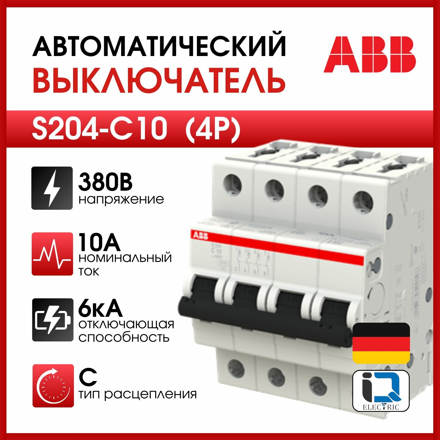 ABB Выключатель автоматический 4-полюсной S204 C10 (арт. 2CDS254001R0104)