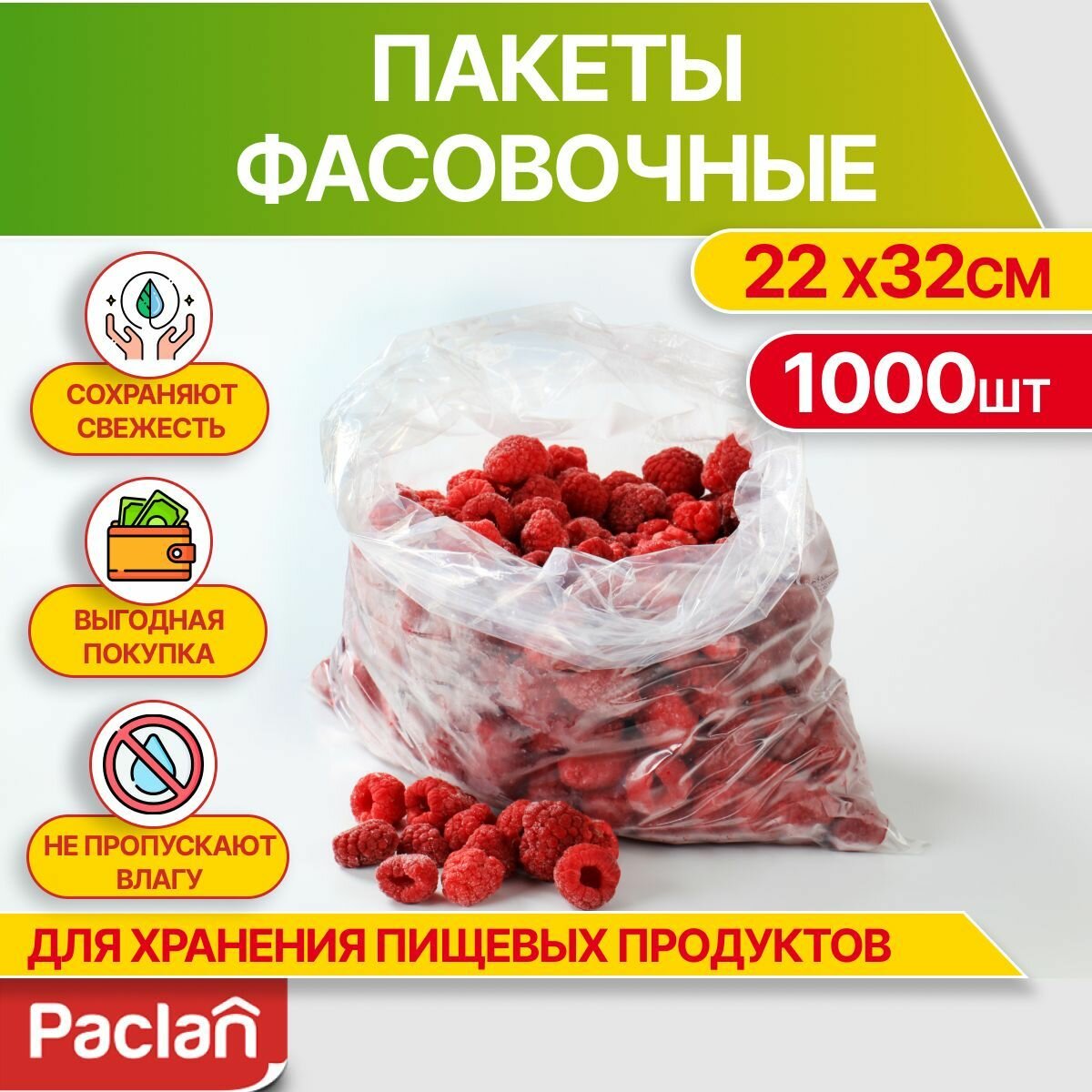 Пакеты фасовочные пищевые для хранения продуктов, 1000 шт, 22 х 32 см, Paclan