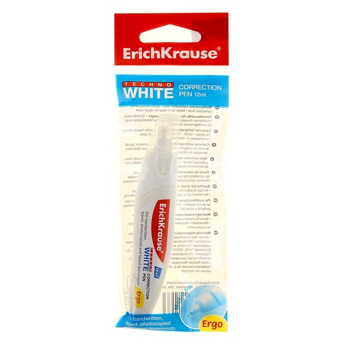 Купить Ручка-корректор ErichKrause Techno White Ergo, 12 мл, с металлическим наконечником, в пакетике