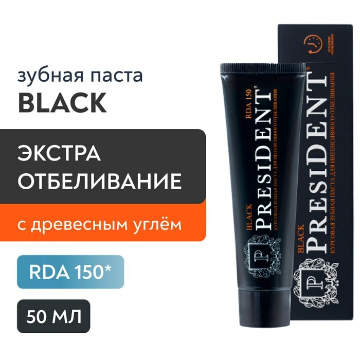 Зубная паста PresiDENT Black (150 RDA) 50 мл интересное: