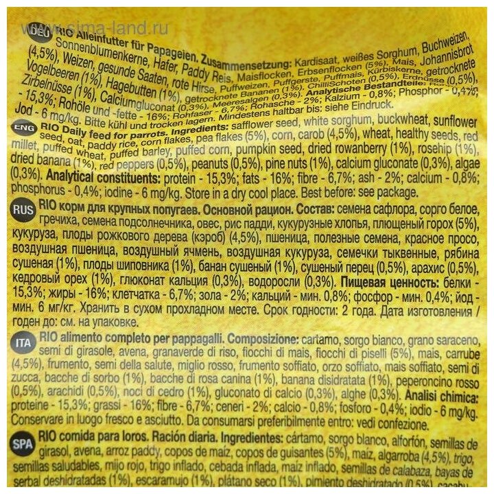 СохранитьРИО Корм для крупных попугаев 1 кг, пакет интересное: