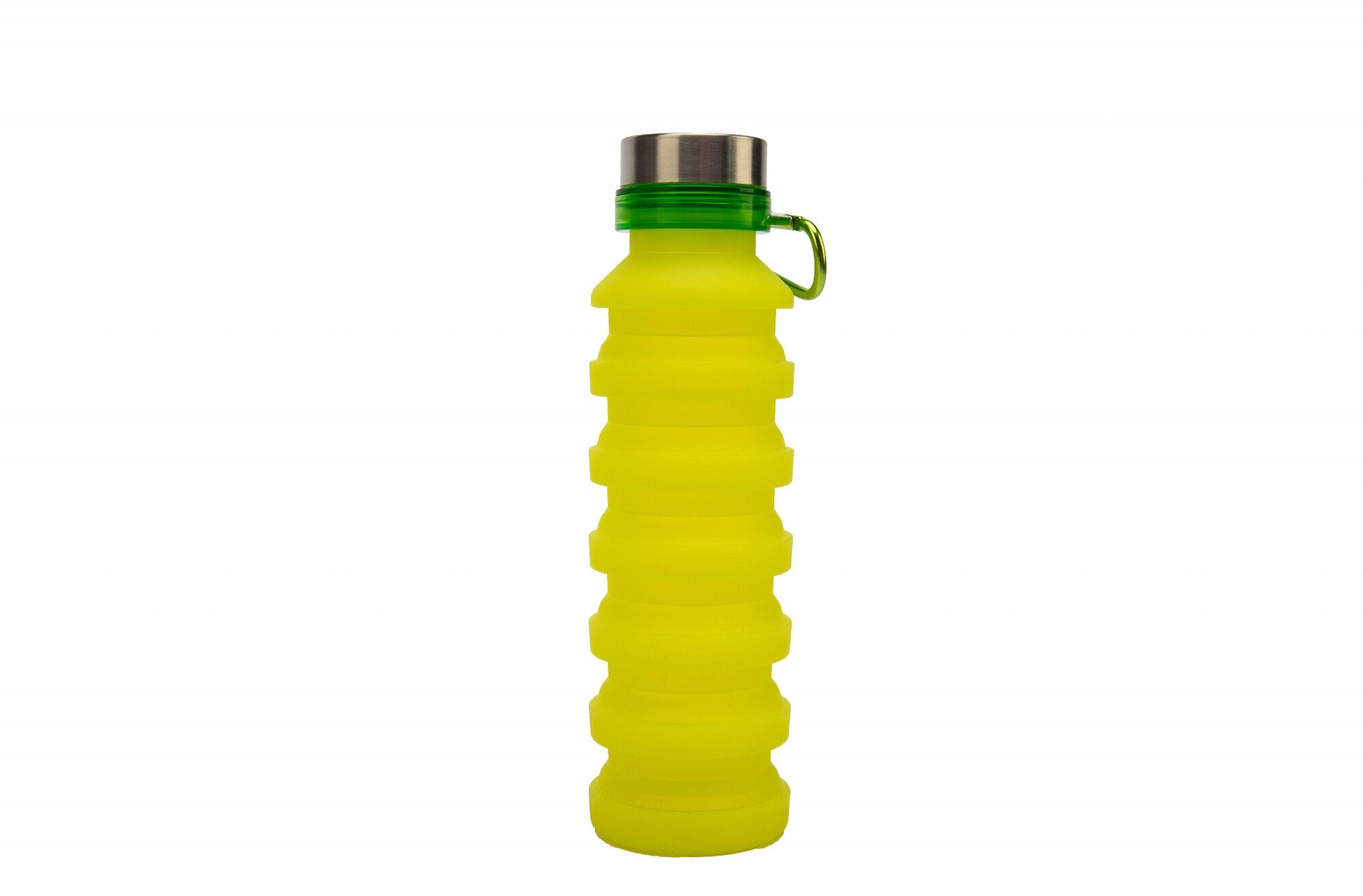 Бутылка для воды силиконовая складная с крышкой и карабином, 500 мл, желтый