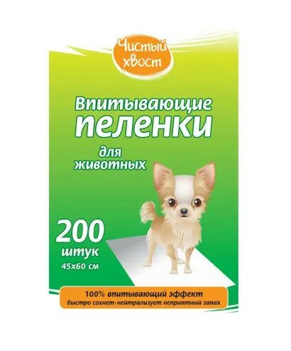 Чистый хвост 200 шт 45х60 см пеленки для животных впитывающие 1х4