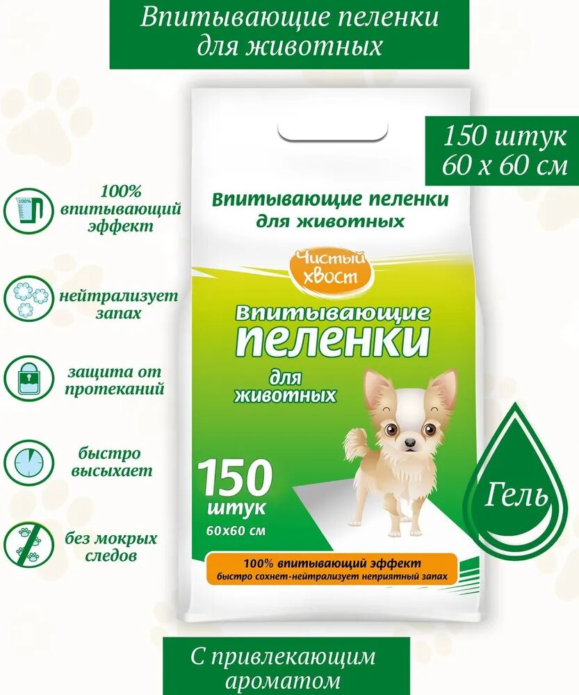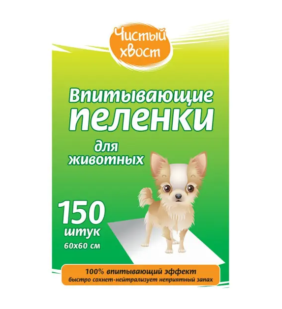 Чистый хвост впитывающие пеленки для животных, 60х60 см, 150 шт