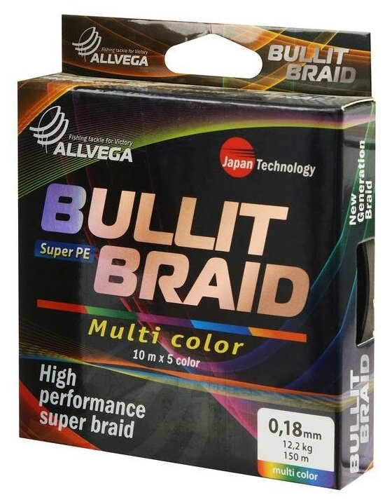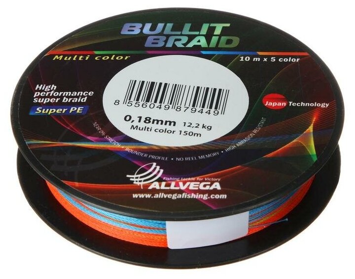 Купить Плетеный шнур Allvega Bullit Braid "Multi Color" 150м 0,18мм 12,2кг