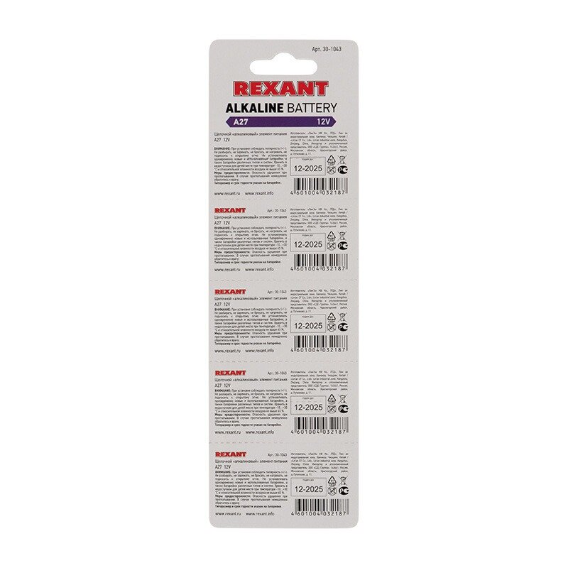 Батарейка REXANT 27A 12V 5 шт 30-1043