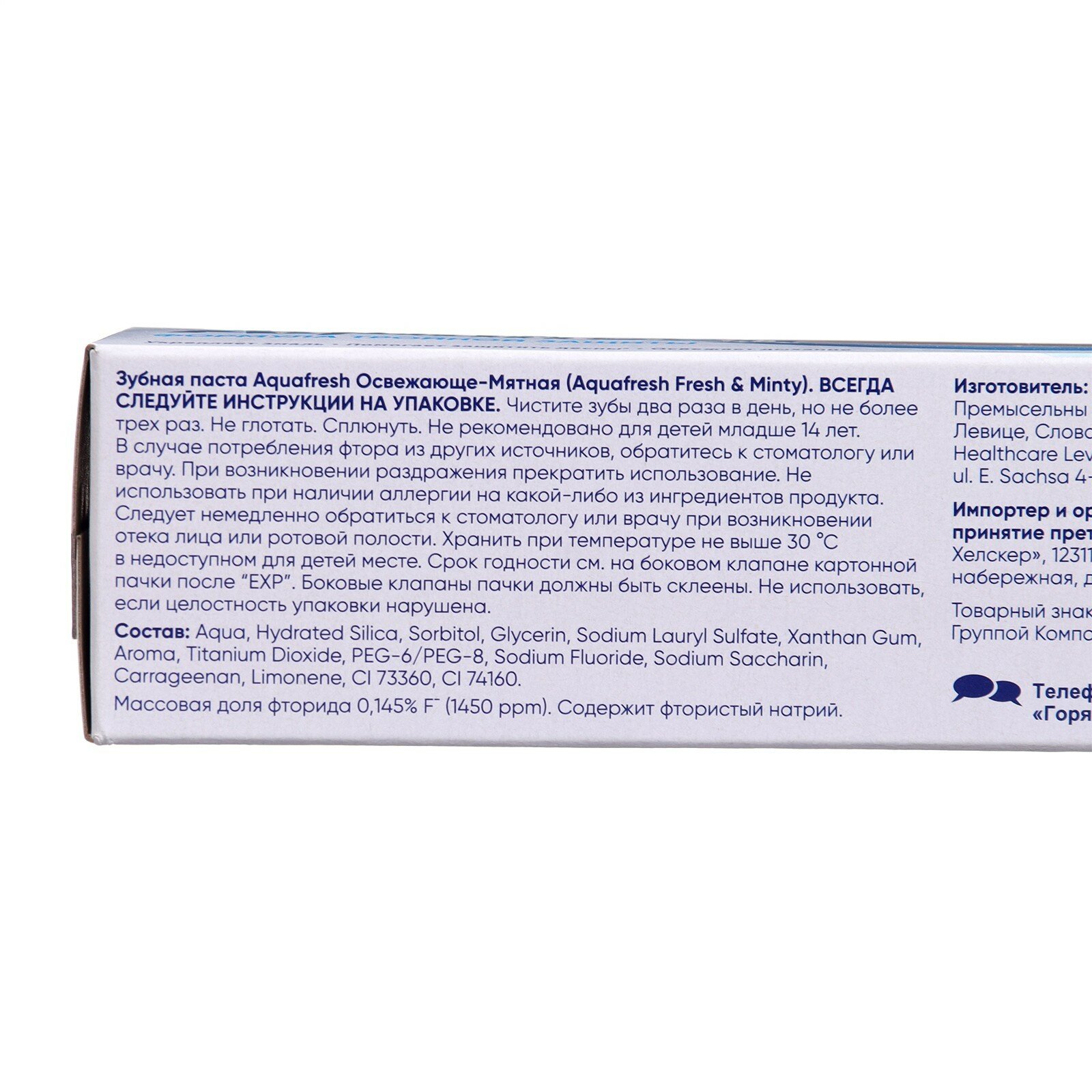 Зубная паста Aquafresh Освежающе-мятная с фтором для тройной защиты полости рта: защита от кариеса, укрепление зубов и свежесть дыхания, 100 мл 2 шт