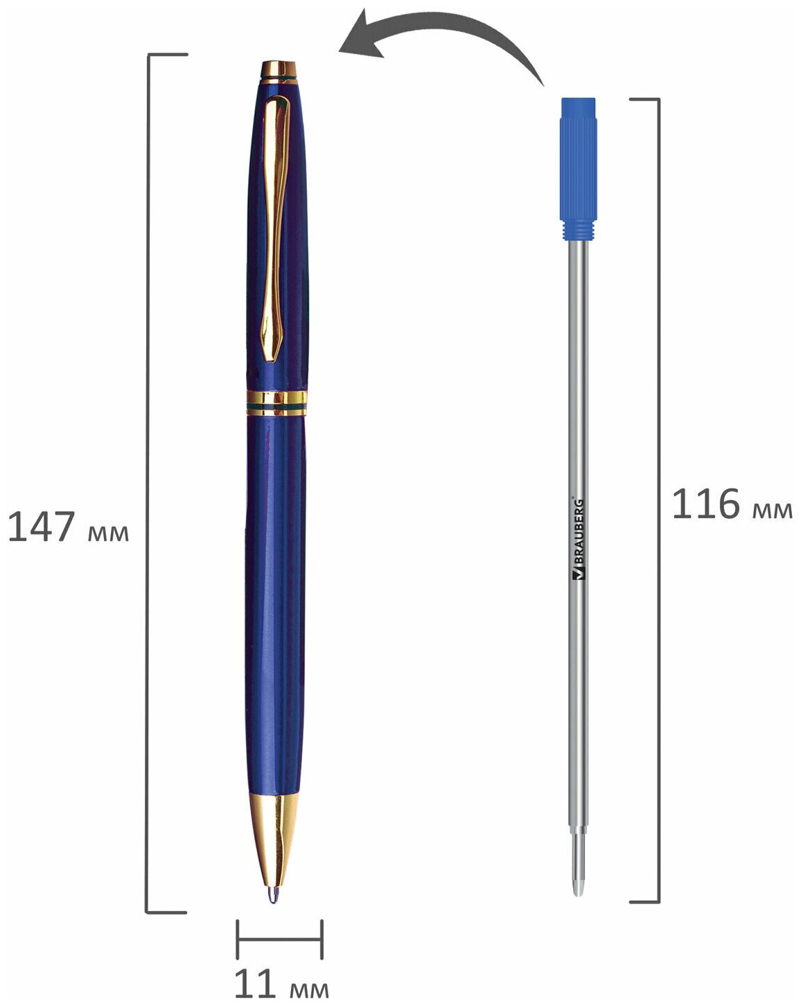 Ручка шариковая Brauberg Бизнес-класс De luxe Blue, корпус синий, золотые детали, 1 мм, синяя (141412)