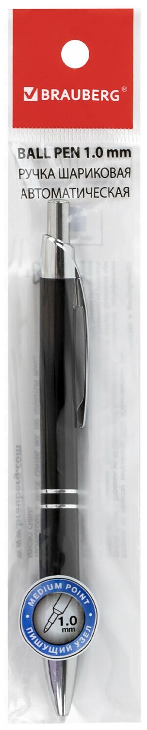 Ручка бизнес-класса шариковая BRAUBERG "Perfect Black", корпус черный, узел 1 мм, линия письма 0,7 мм, синяя, 141416
