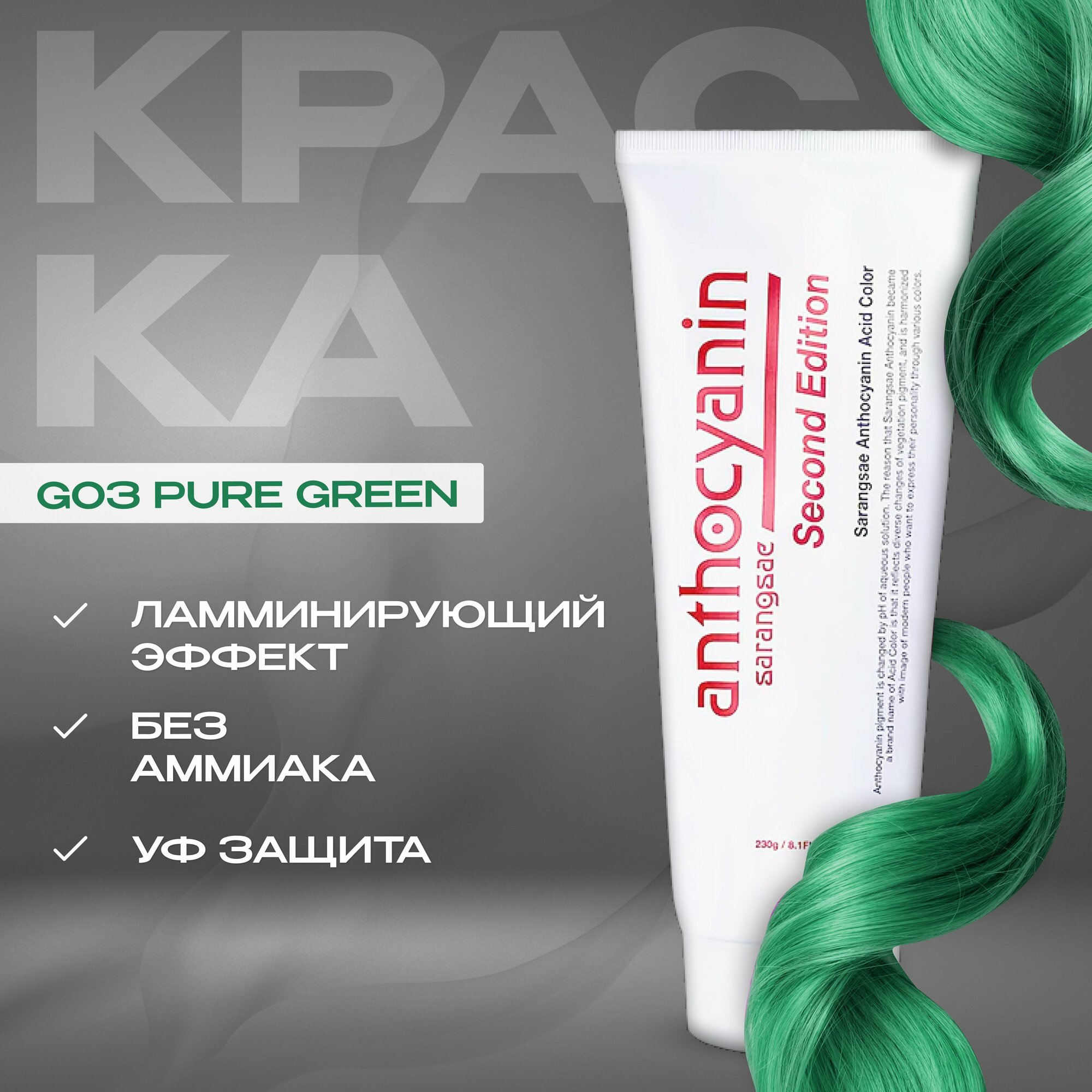 СохранитьANTHOCYANIN Краска для волос Second Edition, g03 pure green, 230 г интересное: